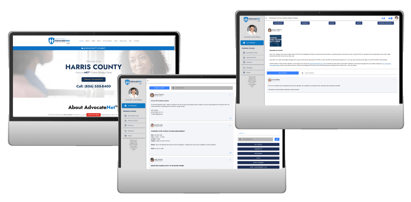AdvocateNet™ is a purpose-built digital platform derived from the proven, secure and approved OPS CONNECT™ architecture. Designed specifically for crime Victim Witness (V/W) services and dedicated advocacy staff, AdvocateNet™ creates a unified, collaborative, and secure environment for victim services professionals and crime victims across the nation.