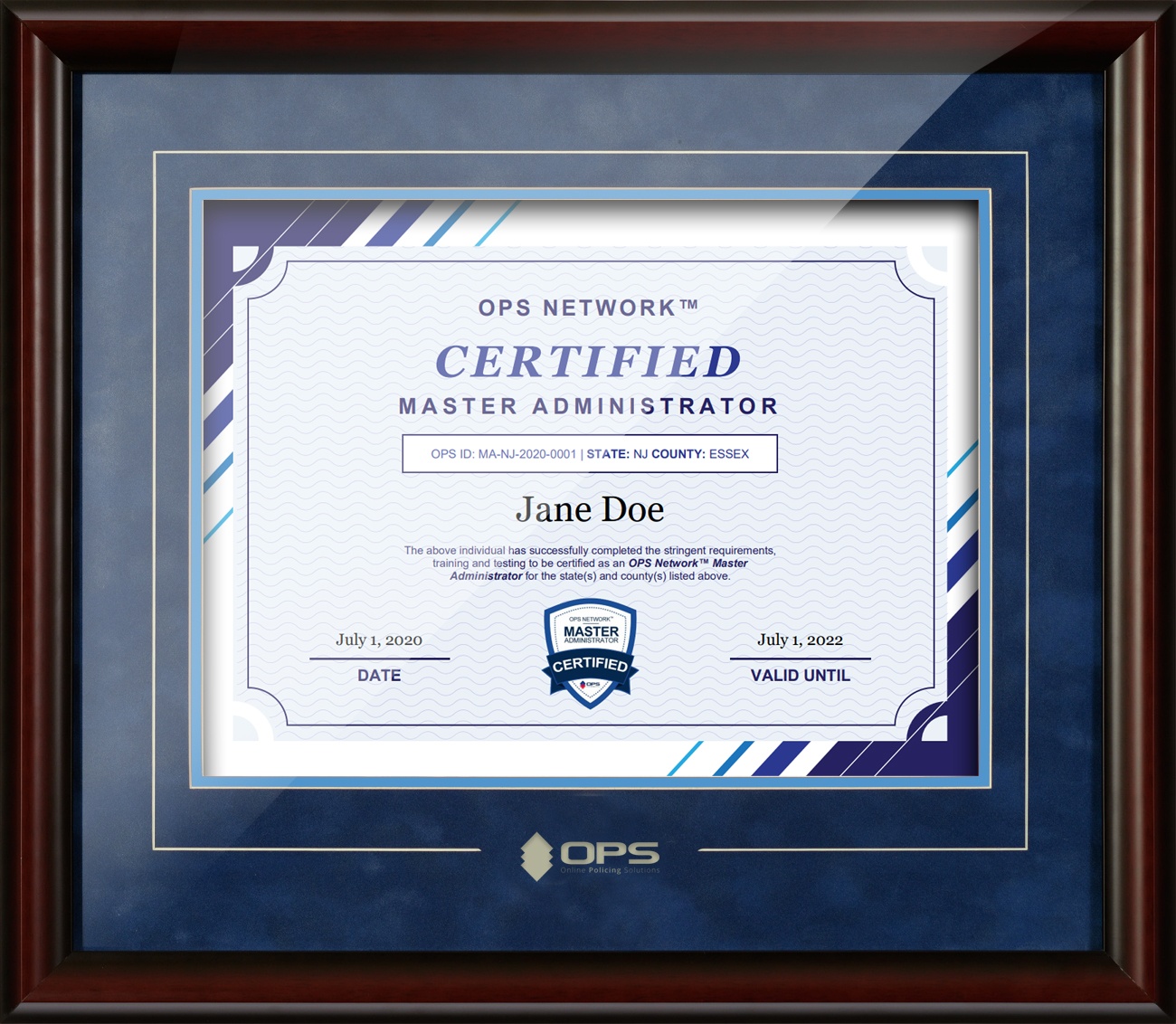 To become an OPS Network™ Certified Master Administrator (CMA), each candidate must be sponsored by a recognized Federal, State, County or local law enforcement agency that is an active OPS Network™ Partner Agency and/or has oversight of at least one OPS Network™ Partner Agency. Each candidate must fulfill the training requirements set forth for CMA Accreditation and abide by the terms and conditions in the CMA program agreement.